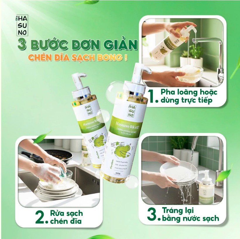 Nước rửa chén Hasuno Rice17 được nghiên cứu với công thức làm sạch thông minh, giúp quá trình rửa chén trở nên nhanh chóng và nhẹ nhàng hơn: