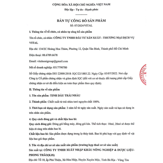 TINH DẦU NHÀU VITAL 10ml