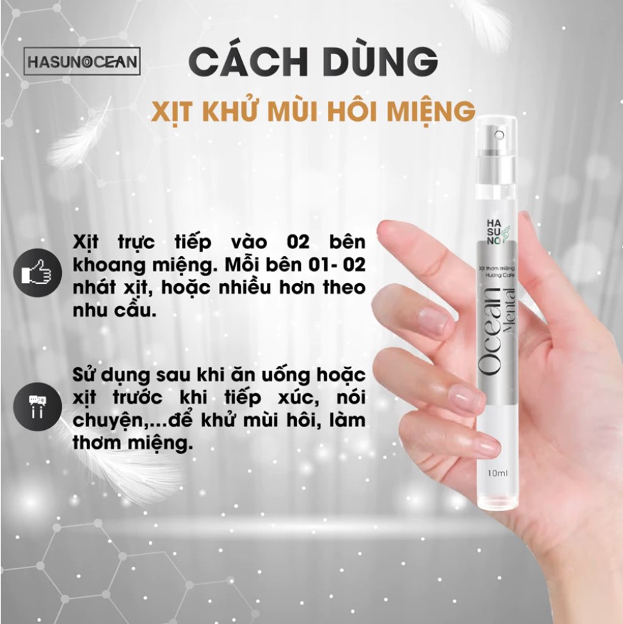 - Sử dụng sau khi ăn uống hoặc xịt trước khi tiếp xúc, nói chuyện,… để khử mùi hôi, làm thơm miệng.