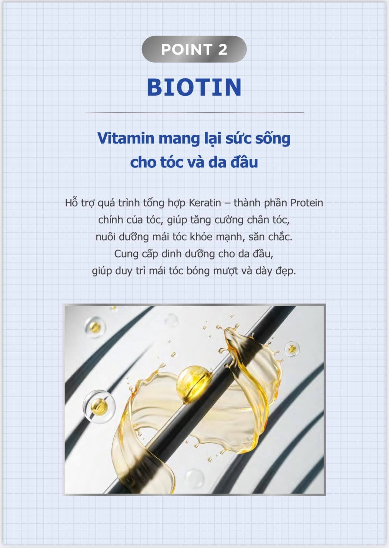 - Dexpanthenol: Giúp chắc khỏe chân tóc và tăng cường độ ẩm, mang lại vẻ ngoài khỏe mạnh và bóng mượt cho tóc.